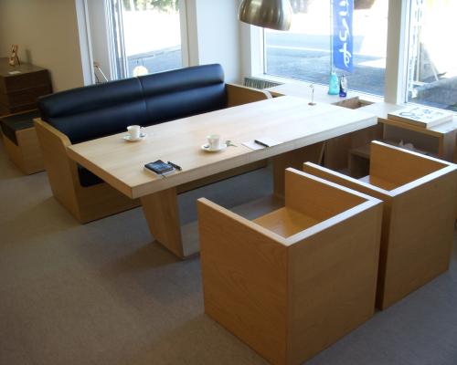追伸:ショールームに展示してあった「時間の箱」で人間が総桐の大きな箱に入り、自分だけの時間と空間を作るのが目的で、そのコンセプトは「桐はやわらかくしっとりしてぬくもりがある素材なのに、人が桐に包まれるのは死んで棺おけに入る時。生きている時包まれたい」とのことだそうです。また、ショールームに、桐で作ったリビングセットも有りましたので是非皆様にご紹介しましょう。