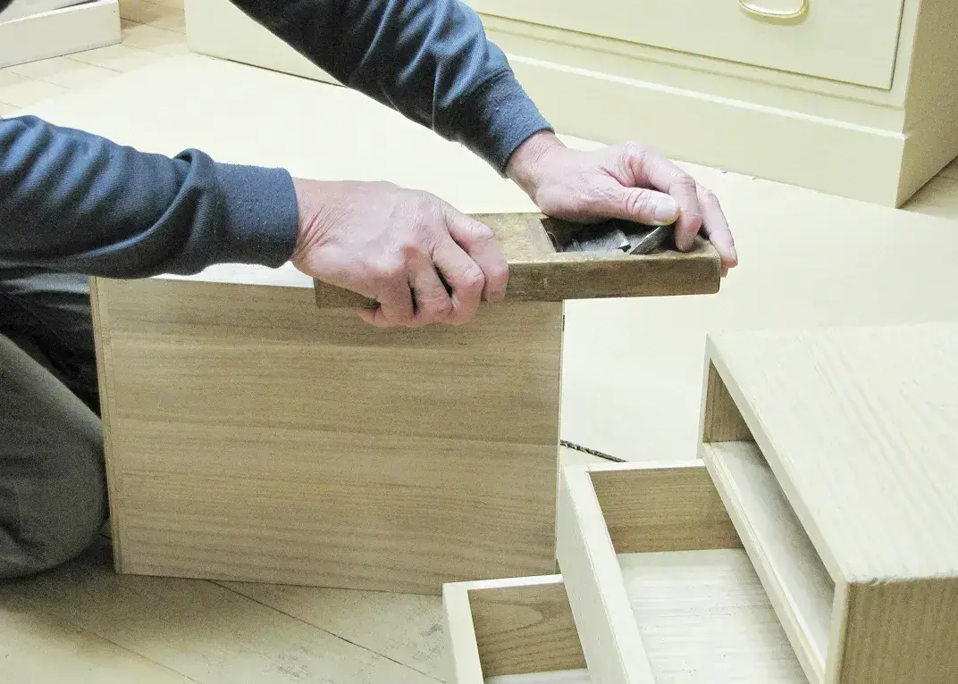 桐たんすの修理・更生は、お客様のご意向やご希望にあわせて行います。お客様のご希望と費用と、桐たんすの修理内容や仕上げ方など打ち合わせをさせていただき、作業いたします。