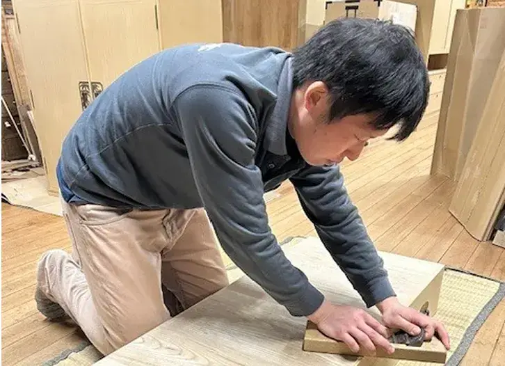 箪笥の松本では熟練の職人が桐箪笥を更生した後、別の職人が細部にまで検品を行うダブルチェック体制をとっております。