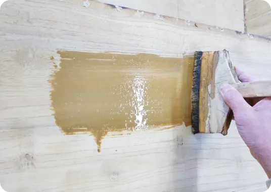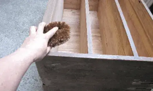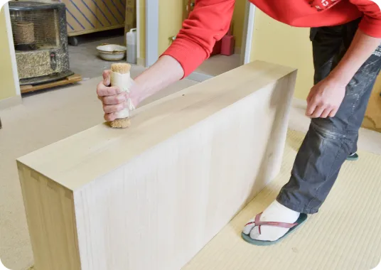 うずくりを塗装する部分にかけ、桐材の木目が綺麗に浮かびあがるようにします