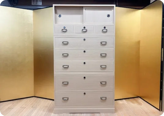 長い間使い込まれた桐箪笥、眠っている桐箪笥も、再生すると美しく使いやすく蘇ります。